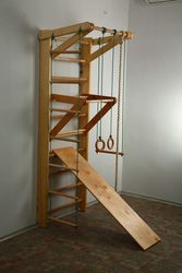 Составляющие спортивного комплекса: * Шведская стенка с турником. * Веревочная лестница. * Кольца гимнастические. * Канат. * Гимнастическая трапеция. * Доска для спины и пресса.