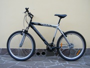 стальная рама 20, передняя аморт. вилка (эластомер), шифтеры/перекидки Shimano, удобные грипсы (ручки), колеса 26, V-brake тормоза, снаряженная масса 15кг., почищен, смазан, настроен.